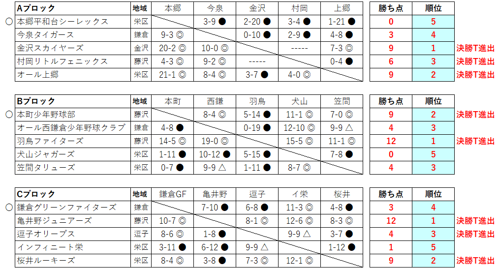 湘南リーグ親善少年野球大会は、鎌倉市、横浜市栄区、横浜市金沢区、藤沢市、茅ケ崎市、逗子市、葉山町の軟式少年野球チームを対象としています。